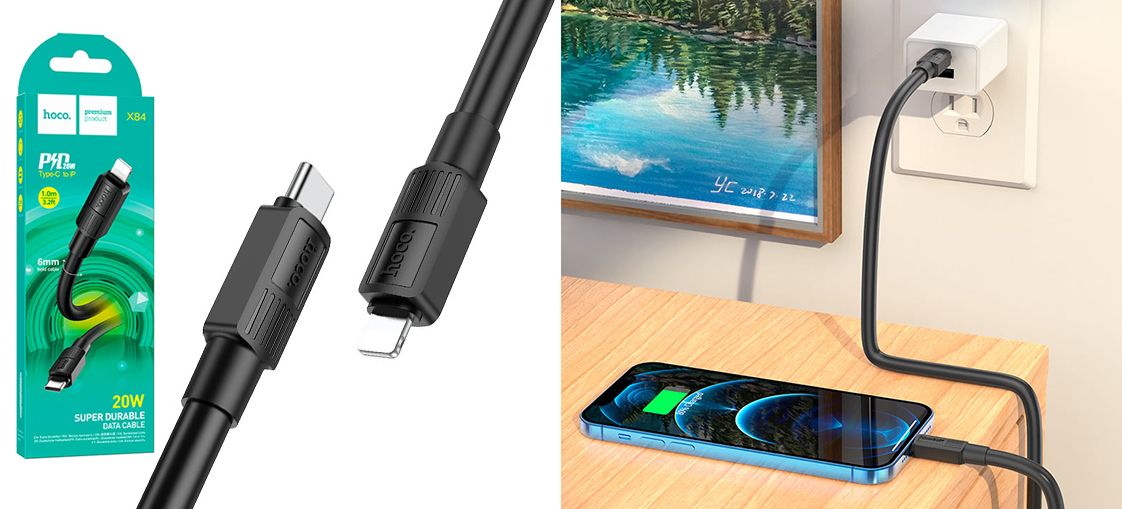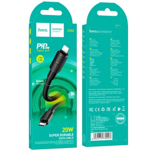USB кабель Hoco X84 Type-C - Lightning 3A 20W PD 1m чорний чудове рішення для зарядки та синхронізації даних ваших гаджетів. Шнур тактильно приємний, виконаний із якісних зносостійких матеріалів. Комфортна довжина кабелю 1m. Кабель Type-C Hoco X84 дозволяє не тільки заряджати ваші пристрої, а й передавати дані на комп'ютер чи смартфон.