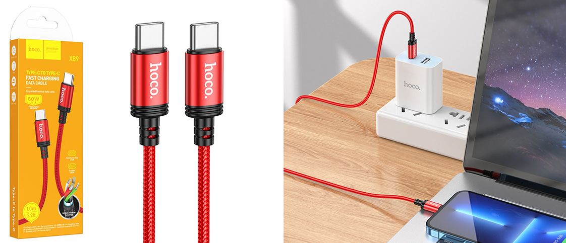 Кабель Hoco X89 Wind (PD) Type-C - Type-C 60W 3A/1m (Червоний)