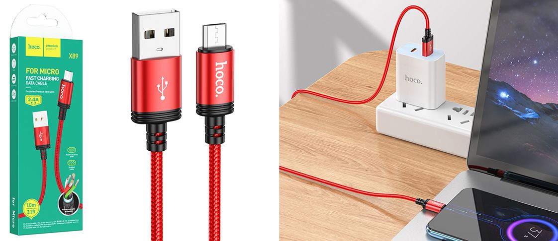 Кабель Hoco X89 Wind USB - MicroUSB 2.4A/1m (Червоний)