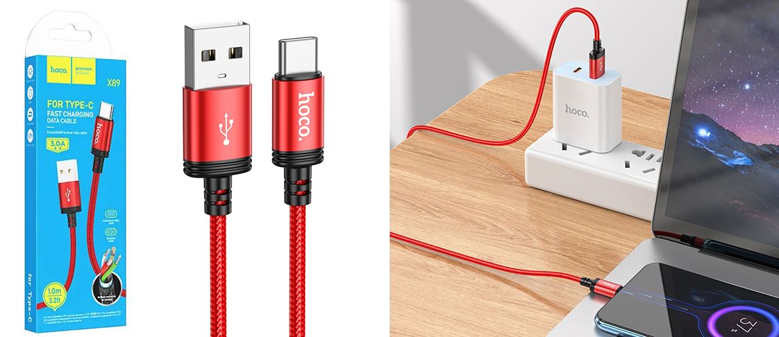 Кабель Hoco X89 Wind USB - Type-C 3A/1m (Червоний)