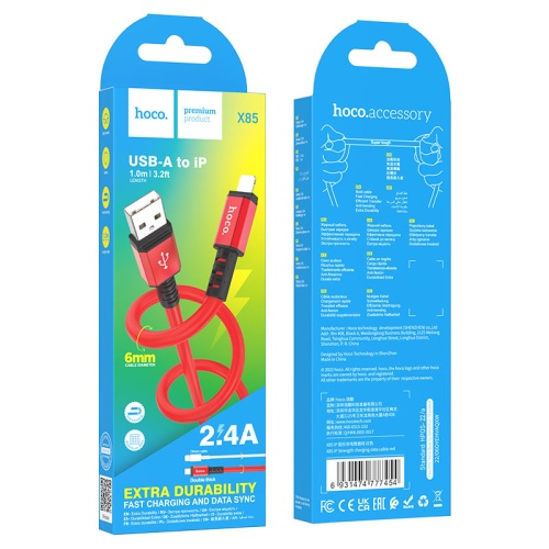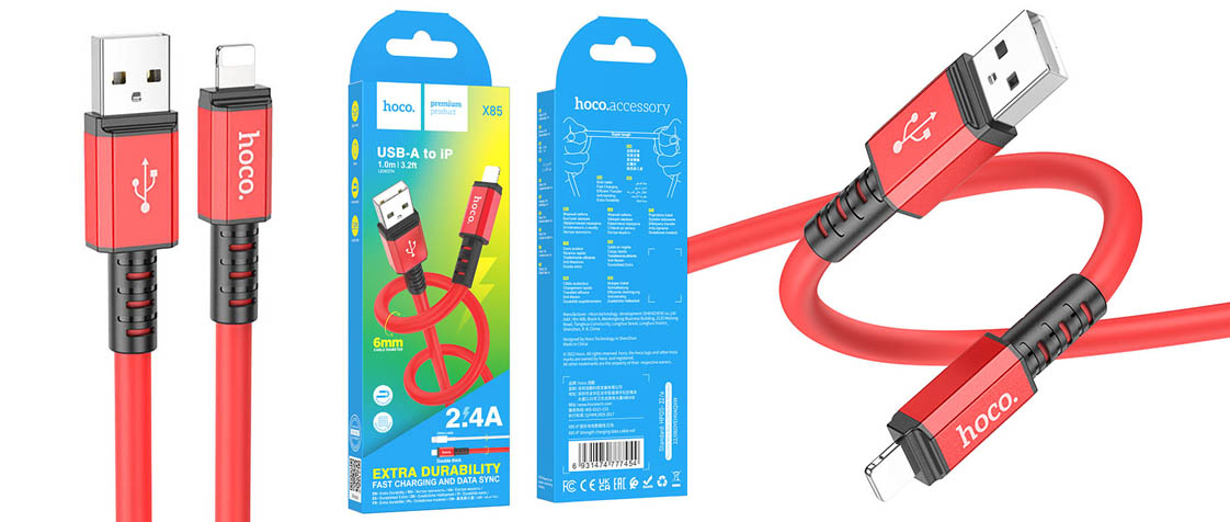 Кабель Hoco X85 Strength USB - Lightning 2.4A/1m (Червоний)