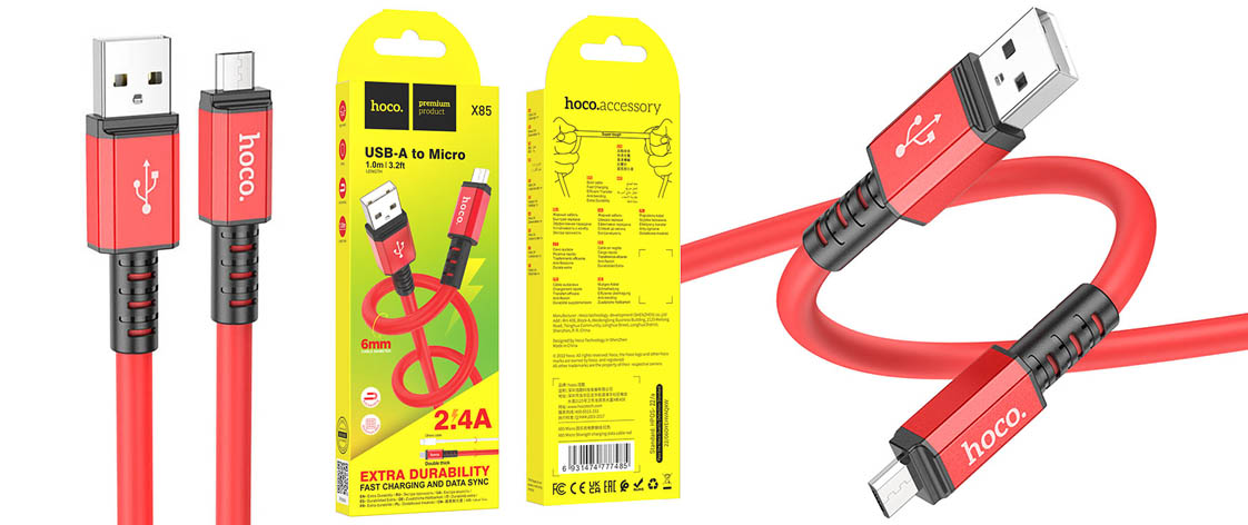 Кабель Hoco X85 Strength USB - MicroUSB 2.4A/1m (Червоний)