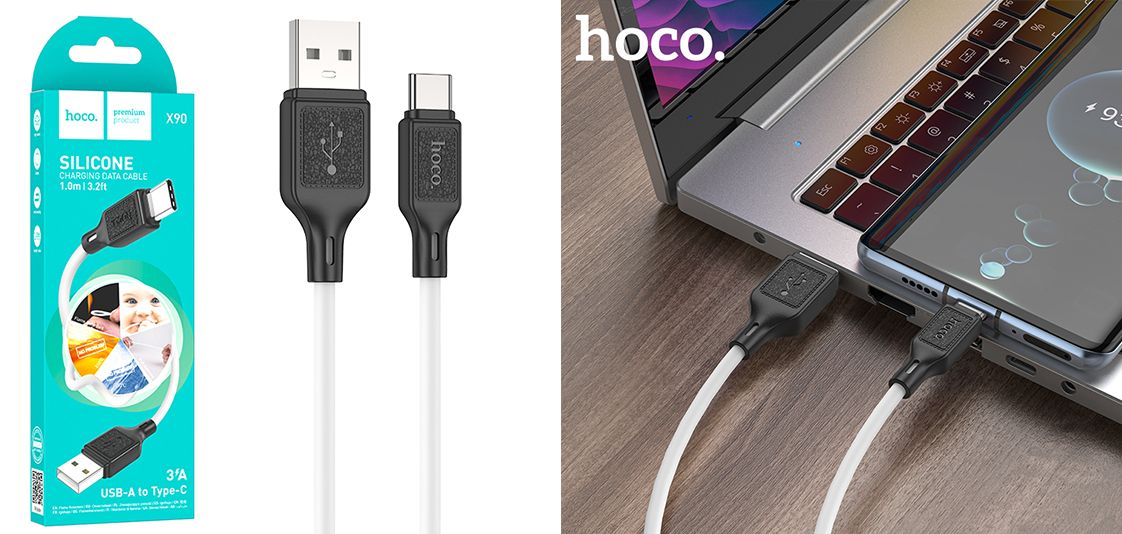 Кабель HOCO X90 Silicone якісний зарядний та дата-кабель з роз'ємом Type-C, який підтримує швидке заряджання з максимальним струмом 3A. Особливістю цього кабелю є його виготовлення з міцного і приємного на дотик силіконового матеріалу, що забезпечує додаткову гнучкість та стійкість до зношування. Довжина кабелю 1 метр робить його ідеальним для використання вдома, на роботі або в подорожі, як для заряджання, так і для передачі даних.