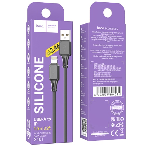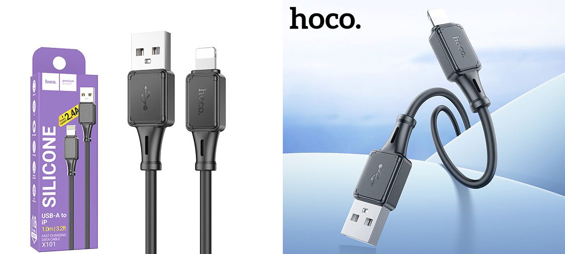 Кабель Hoco X101 Silicone USB - Lightning 2.4A/1m (Чорний)