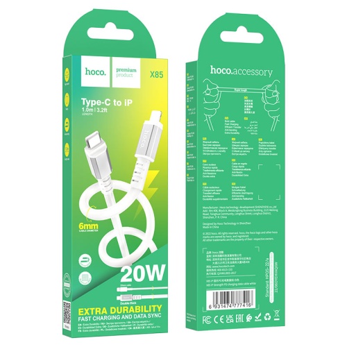 USB-кабель Hoco X85 Strength 20W USB Type-C - Lightning Cable відноситься до категорії дроти зарядні, для швидкої зарядки, синхро-зарядні. Він чудово підходить для телефонів, для планшетів, коли потрібно підключити ваш гаджет та комп'ютер чи лептоп. Але це не означає, що ви не зможете підключити кабель до інших пристроїв, за наявності відповідних слотів із цим не виникне труднощів.