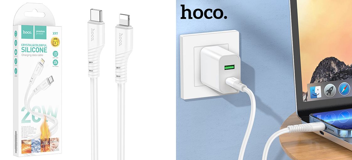 Кабель USB Hoco X97 Crystal color Silicone Type C to Lightning PD20W - це високоякісний аксесуар, який допоможе підключити смартфон або планшет до комп'ютера для швидкісного обміну даними, а також швидко зарядити їх від автомобільного адаптера, мережевого пристрою або повербанка. Модель виділяється тривалим терміном служби та винятковою надійністю, здатна гарантувати абсолютно безпечний процес зарядки зі стабільною напругою та силою струму на виході. Роз'єми аксесуара виготовлені з корозієстійкого металу та мають зносостійкі контакти.