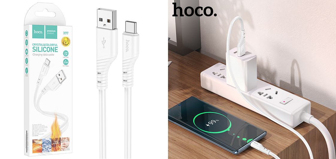 USB Hoco X97 Crystal color Silicone Type C допоможе швидко, безпечно зарядити сумісні з ним гаджети та підключити їх до комп'ютера для синхронізації зі швидкісною передачею даних. Аксесуар виготовлений з використанням сучасних технологій та матеріалів найвищої якості, що гарантує його тривалий термін служби та збереження привабливого зовнішнього вигляду. Надійні контакти та корозійностійкі деталі конекторів не тільки забезпечать стабільне з'єднання, але й убережуть від пошкоджень роз'єм гаджета, що заряджається, при частому використанні.