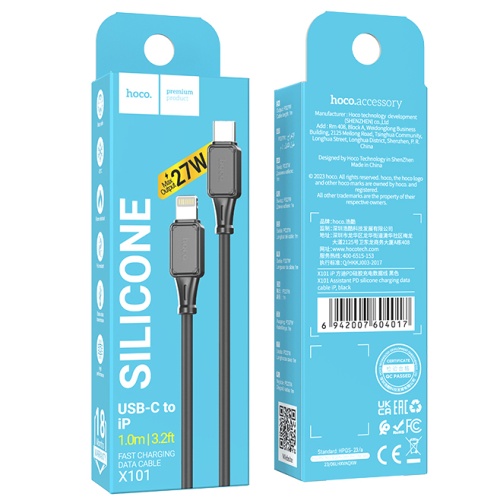 Кабель USB Hoco X101 Assistant Silicone Type-C для Lightning PD27W виконаний у повній відповідності з технологією PD для повноцінної швидкої зарядки iPhone та інших сумісних пристроїв. Модель реалізована в оригінальному, технологічному дизайні зі строгими лініями та деталями, що відображають її виняткову надійність.