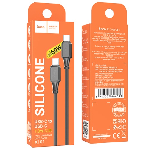Кабель Hoco X101 Silicone (PD) Type-C - Type-C 60W/1m (Чорний)