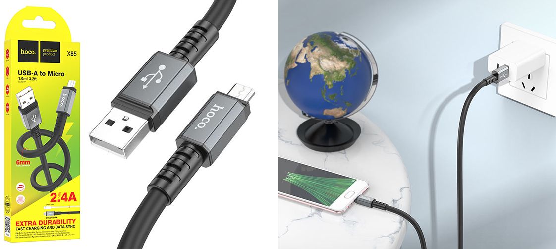 Кабель Hoco X85 Strength USB - MicroUSB 2.4A/1m (Чорний)