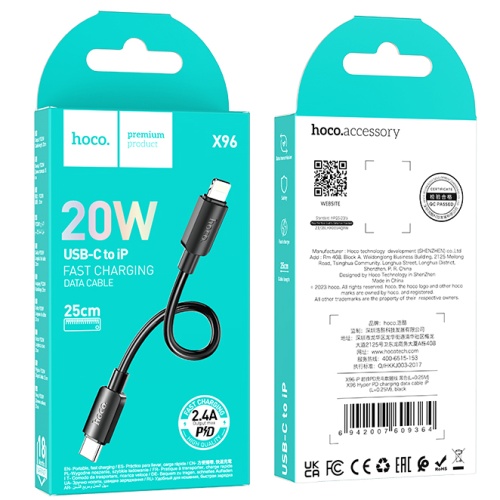 Кабель Hoco X96 Hyper PD20W Type-C - Lightning 2.4A/0.25m