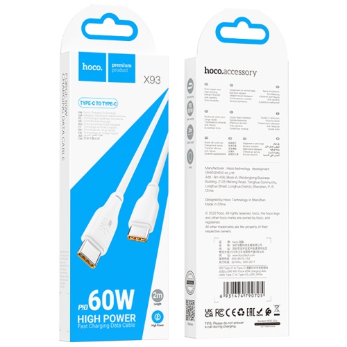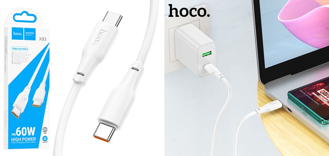 USB Hoco X93 Force Type-C до Type-C – це универсальний кабель, який підтримує передачу даних, може використовуватись для заряджання смартфонів, планшетів та навіть деяких моделей ноутбуків. Аксесуар відрізняється винятковою надійністю та тривалим терміном служби, здатний гарантувати абсолютну безпеку процесу заряджання.