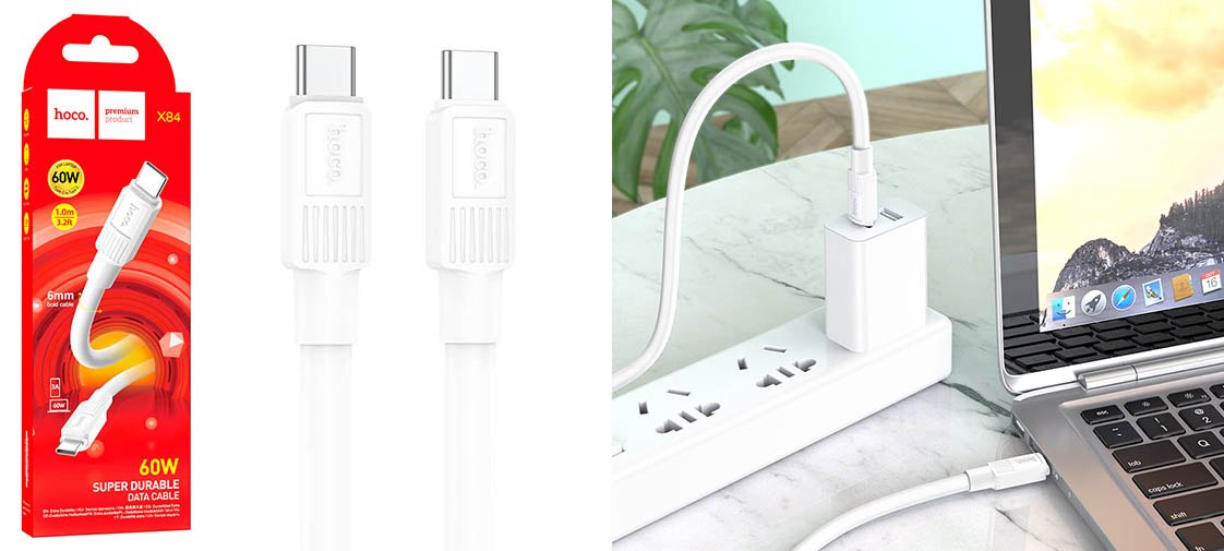 Кабель Hoco X84 Solid (PD) Type-C - Type-C 60W 3A/1m (Білий)