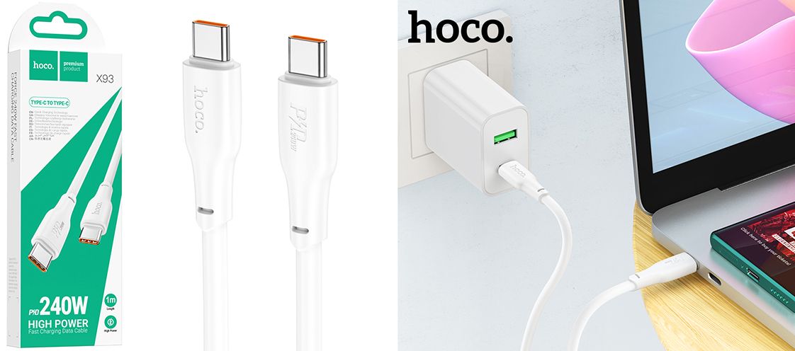 USB Hoco X93 Force Type-C до Type-C – це універсальний кабель, який підтримує передачу даних, може використовуватись для заряджання смартфонів, планшетів та навіть деяких моделей ноутбуків.