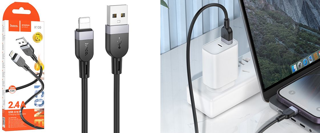 Кабель Hoco X109 Silicone USB - Lightning 2.4A/3m (Чорний)