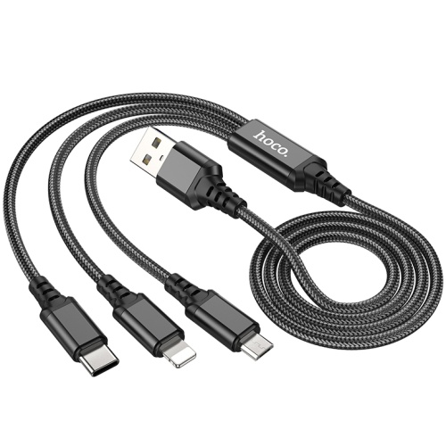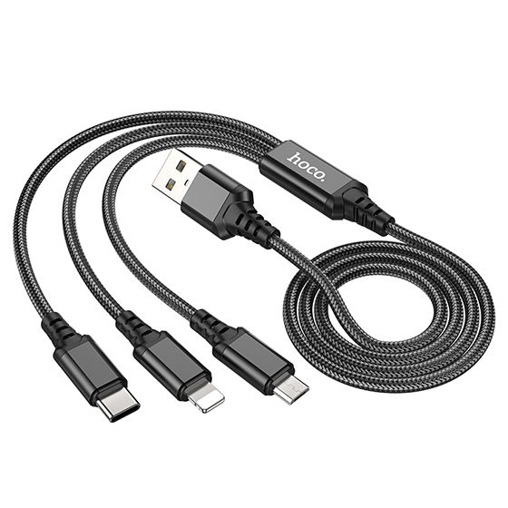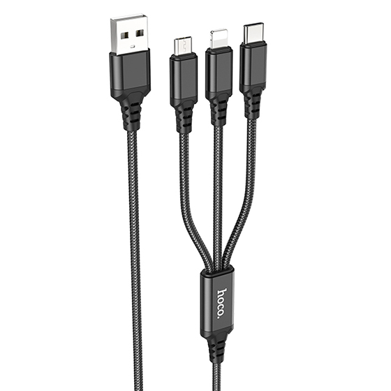 Кабель Hoco X76 3in1 USB - (Lightning+MicroUSB+Type-C) 2.0A/1m (Чорний)
