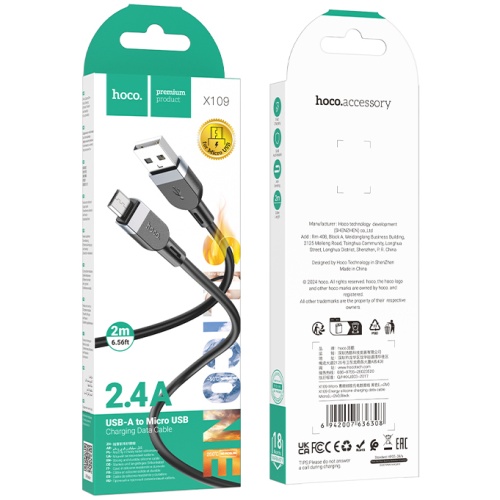 Кабель Hoco X109 Silicone USB - MicroUSB 2.4A/2m (Чорний)