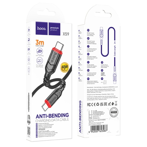 Кабель Hoco X59 Victory Type-C - Type-C PD60W/3.0A/3m (Чорний)