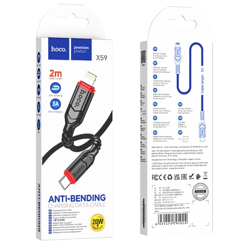 Кабель Hoco X59 Victory Type-C - Lightning PD20W/3.0A/2m (Чорний)