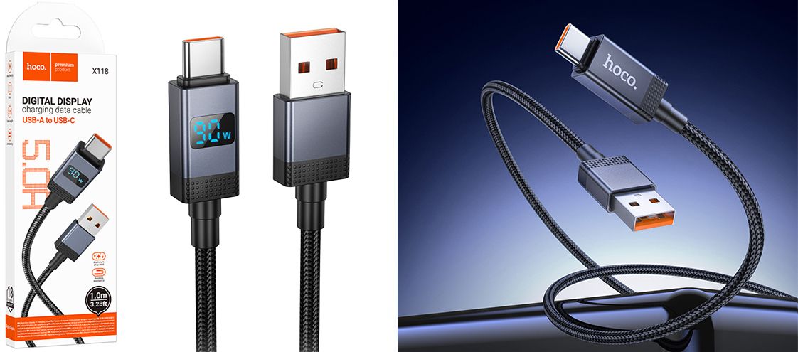 HOCO X118 – це сучасний кабель із роз’ємом Type-C, створений для високошвидкісної зарядки сучасних гаджетів. Він підтримує силу струму до 5А та сумісний з більшістю популярних протоколів швидкої зарядки, включаючи OPPO VOOC, Huawei FCP/SCP, Samsung AFC, Xiaomi Mi Turbo Charge, Qualcomm QC та інші.
