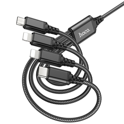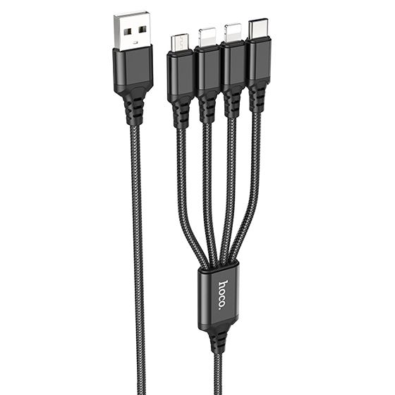 Кабель Hoco X76 4in1 USB - (Lightning+Lightning+MicroUSB+Type-C+Type-C) 2.0A/1m (Чорний)