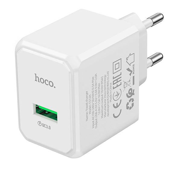 Мережевий Зарядний Пристрій Hoco CS12A 1USB/18W/QC3.0 (Білий)