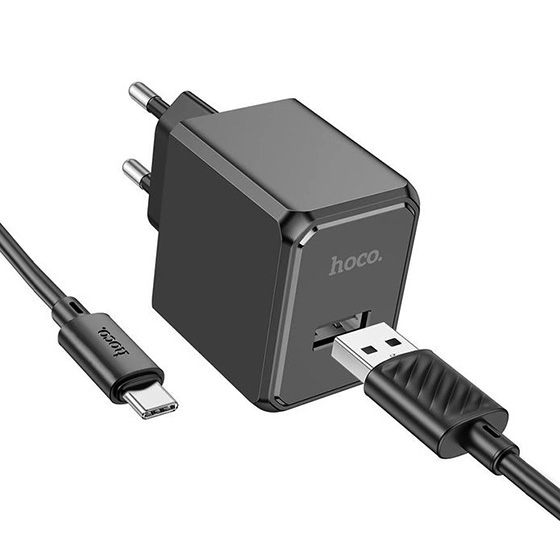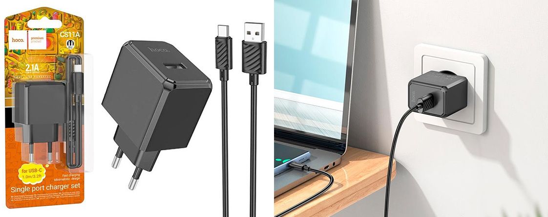 Мережевий Зарядний Пристрій Hoco CS11A 1USB/2.1A + (USB - Type-C) (Чорний)