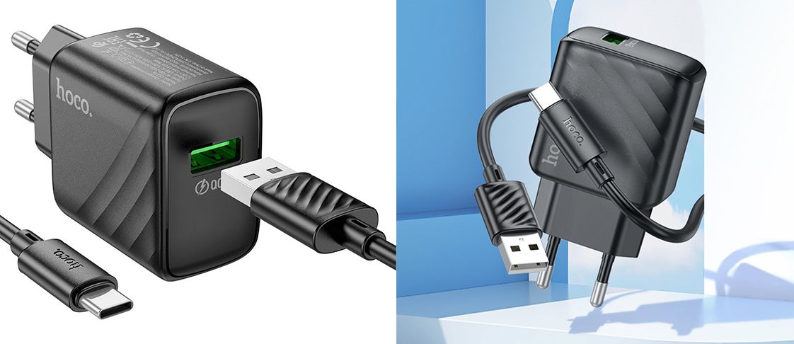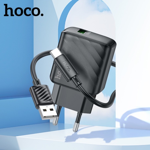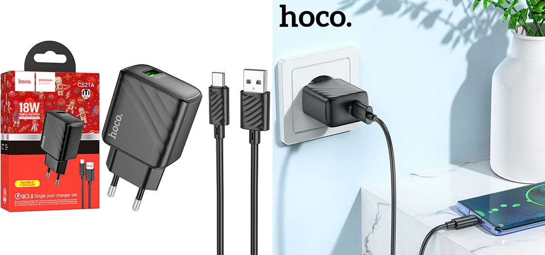Мережевий Зарядний Пристрій Hoco CS21A 1USB/18W/QC3.0 + (USB - Type-C) (Чорний)