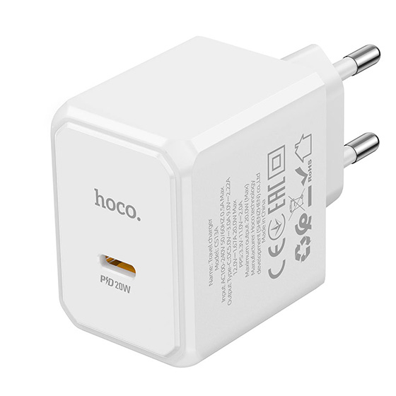 Мережевий Зарядний Пристрій Hoco CS13A 1Type-C/20W/PD (Бiлий)
