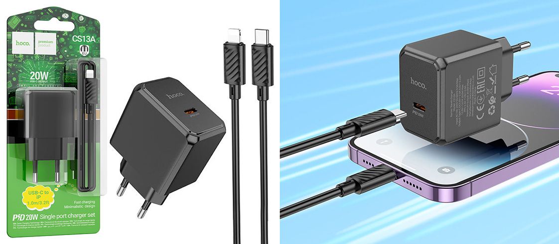 Мережевий зарядний пристрій Hoco CS13A PD20W + кабель Type-C - Lightning – це сучасне та безпечне рішення для швидкого заряджання ваших мобільних пристроїв. Виготовлений з PC та ABS, які забезпечують високу міцність і довговічність пристрою. Завдяки підтримці технології PD (Power Delivery) з потужністю 20 Вт цей зарядний пристрій здатний швидко заряджати смартфони, планшети та інші пристрої з портом Type-C. Компактний розмір та стильний дизайн роблять Hoco CS13A ідеальним вибором для подорожей та повсякденного використання. Він гарантує безпеку вашого пристрою, запобігаючи перегріву та короткому замиканню під час заряджання.
