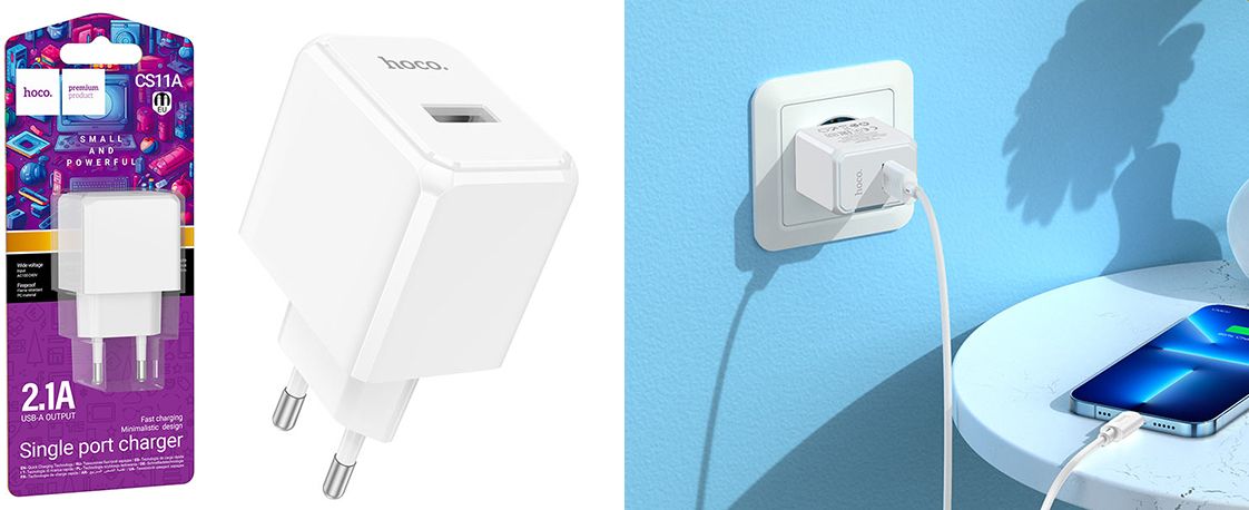 Мережевий зарядний пристрій Hoco CS11A – це практичне рішення для безпечного заряджання портативних гаджетів: смартфонів, планшетів, гарнітур, повербанків та сумісної комп'ютерної периферії. Аксесуар виконаний в оригінальному мінімалістичному дизайні. Його скошені грані та текстурована поверхня у поєднанні з компактними розмірами забезпечать приємні тактильні відчуття та максимально комфортну експлуатацію. Для його виготовлення використовуються матеріали найвищої якості та надійні електронні компоненти, що гарантує тривалий термін служби та стабільний процес заряджання.
