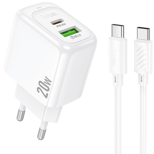 Мережевий Зарядний Пристрій Hoco CS54A 1USB/18W/QC3.0 + 1Type-C/20W/PD + (Type-C - Type-C) (Білий)