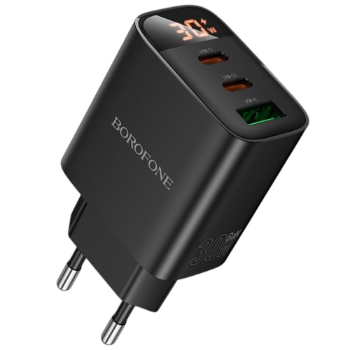 Мережевий Зарядний Пристрій Borofone BA98A 1USB/18W/QC3.0 + 2Type-C/30W/PD Led Display (Чорний)