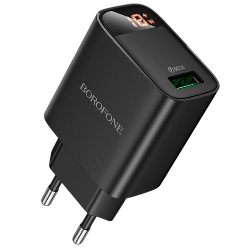Мережевий Зарядний Пристрій Borofone BA95A 1USB/18W/QC3.0 Led Display (Чорний)