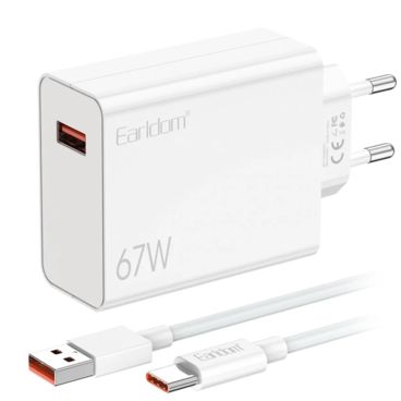 Мережевий Зарядний Пристрій Earldom ES-EU47C 1USB/67W/QC3.0 + (USB - Type-C) (Білий)