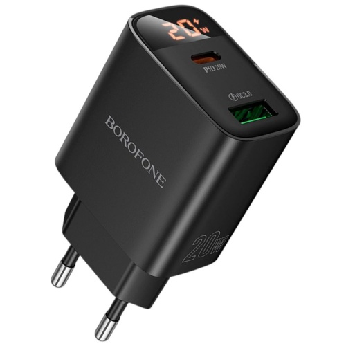 Мережевий Зарядний Пристрій Borofone BA96A 1USB/18W/QC3.0 + 1Type-C/20W/PD Led Display (Чорний)