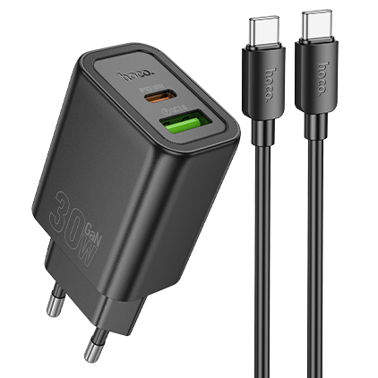 Мережевий Зарядний Пристрій Hoco N63 1USB/18W/QC3.0 + 1Type-C/30W/PD + (Type-C - Type-C) (Чорний)