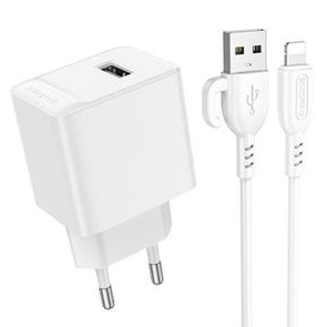Мережевий Зарядний Пристрій Borofone BAS11A 1USB/10.5W + (USB - Lightning) (Білий)