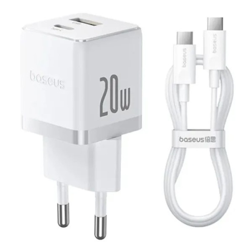 Мережевий Зарядний Пристрій Baseus Palm Fast Charger (P10111602213-01) 1Type-C/20W/PD +(Type-C - Type-C 60W) (Білий)
