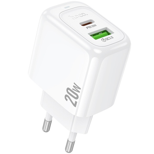 Мережевий Зарядний Пристрій Hoco CS54A 1USB/18W/QC3.0 + 1Type-C/20W/PD (Білий)