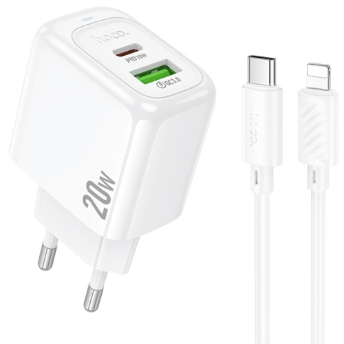 Мережевий Зарядний Пристрій Hoco CS54A 1USB/18W/QC3.0 + 1Type-C/20W/PD + (Type-C - Lightning) (Білий)