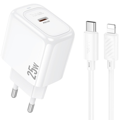 Мережевий Зарядний Пристрій Hoco CS53A 1Type-C/25W/PD + (Type-C - Lightning) (Бiлий)