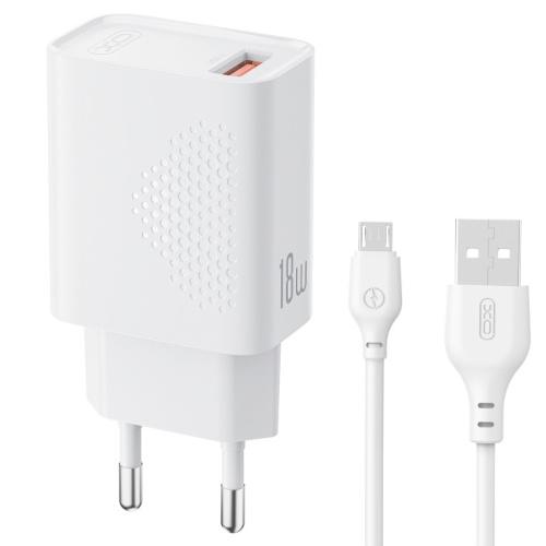 Мережевий Зарядний Пристрій XO L127 1USB/18W/QC3.0 + (USB - MicroUSB) (Бiлий)