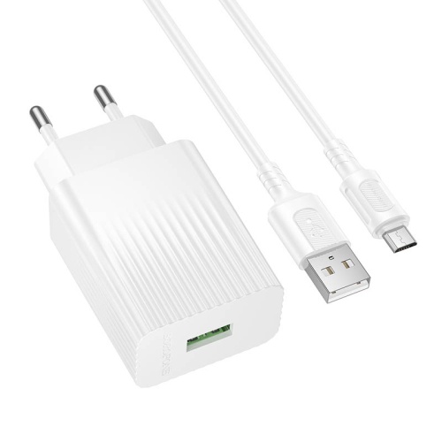 Мережевий Зарядний Пристрій Borofone BAS72A 1USB/18W/QC3.0 + (USB - MicroUSB) (Білий)