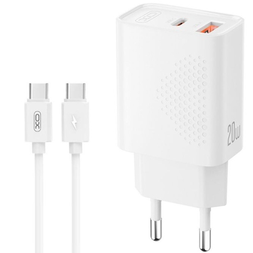 Мережевий Зарядний Пристрій XO L161 1USB/18W/QC3.0 + 1Type-C/20W/PD + (Type-C - Type-C) (Бiлий)