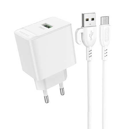 Мережевий Зарядний Пристрій Borofone BAS12A 1USB/18W/QC3.0 + (USB - MicroUSB) (Білий)