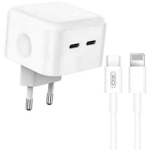 Мережевий Зарядний Пристрій XO L102 2Type-C/35W/PD + (Type-C - Lightning) (Бiлий)