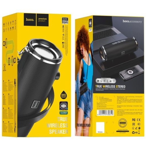 Колонка Hoco BS40 підтримує профілі Bluetooth A2DP, AVRCP, HFP та оснащена мікрофоном, тому може використовуватись у режимі телефонних розмов. До неї можна підключитися кабелем AUX (він додається) і є можливість відтворювати музику у форматі MP3 з USB-флешки і карти пам'яті Micro-SD.