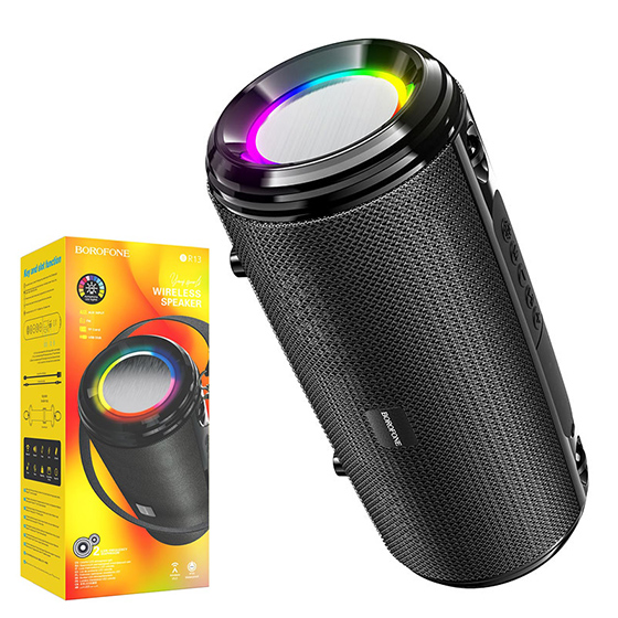 Портативна колонка BR13 — спортивна бездротова колонка в чорному кольорі з різними режимами відтворення і можливістю підтримки розмови.