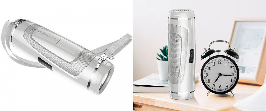 Портативна, переносна аудіо-колонка BOROFONE BR7 безпровідного типу забезпечує прослуховування аудіо-файлів, приймання телефонних дзвінків та може використовуватись в якості ліхтаря.
